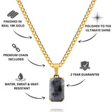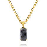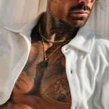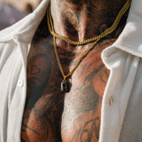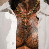 • Model wearing the Gold Spectrolite Pendant paired with the Cuban Chain Gold 5mm | 20inch and the Cuban Bracelet Gold 5mm 8inch
