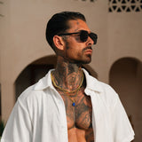 • Model wearing the Gold Lapis Pendant paired with the Cuban Chain Gold 5mm | 20inch and the Cuban Bracelet Gold 5mm 8inch